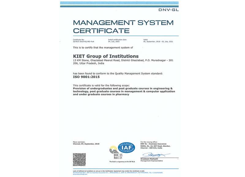2024KIET has received a certificate from DNV Management System. The institute has been found to conform to the Environmental Management System standard: ISO 14001: 2015
