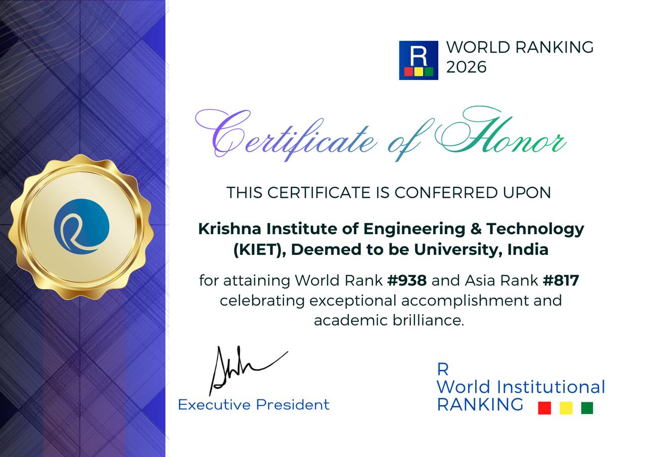 2026KIET Deemed to be University has received an honor for attaining World Rank #938 and Asia Rank #817, celebrating exceptional accomplishment and academic brilliance.