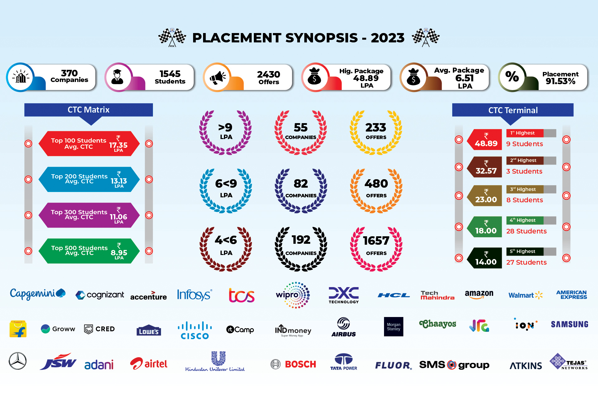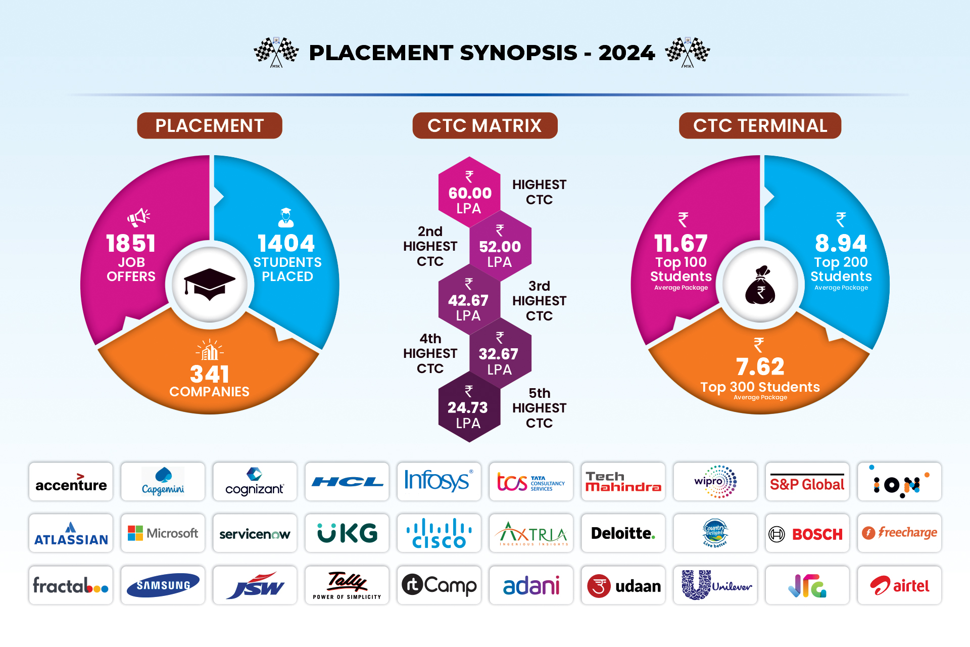 - 370+ Companies visited the campus for the 2025 recruitment season.